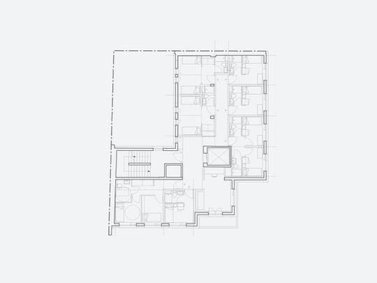 Le projet porte sur la ré-humanisation des espaces. Il y est question de proposer un maximum de chambres seules ou doubles, disposant toutes d’une salle d’eau privative. Les espaces communs sont également repensés pour améliorer leurs usages. Une cour sera recréée au rdc, pour éclairer naturellement ce niveau, créer une ventilation traversante et offrir aux résidents un espace extérieur « privatif » en lien direct avec le réfectoire de l’établissement. La toiture terrasse sera rendue accessible aux résidents.